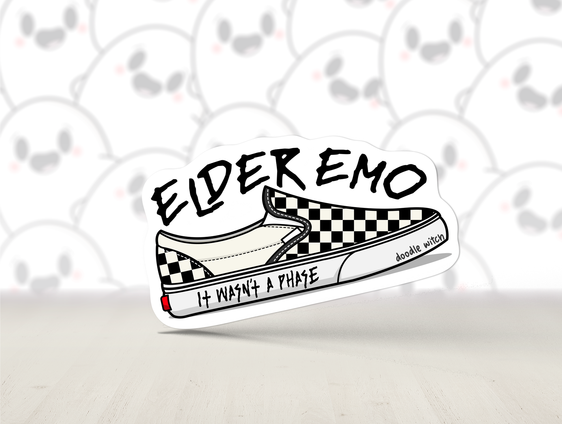 Elder Emo Checkered Vans Sticker DoodleWitch
