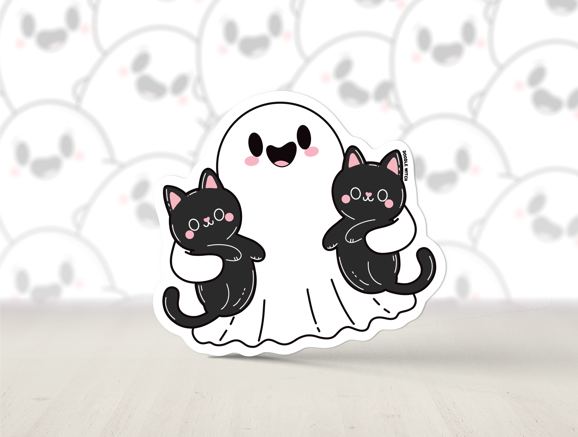 Ghost with Cats Sticker DoodleWitch